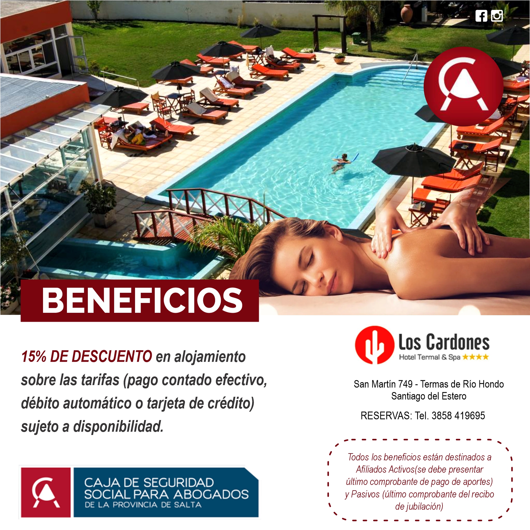 15% de descuento en alojamiento sobre las tarifas, pagando contado efectivo, debito y tarjetas de crédito. Sujeto a disponibilidad.