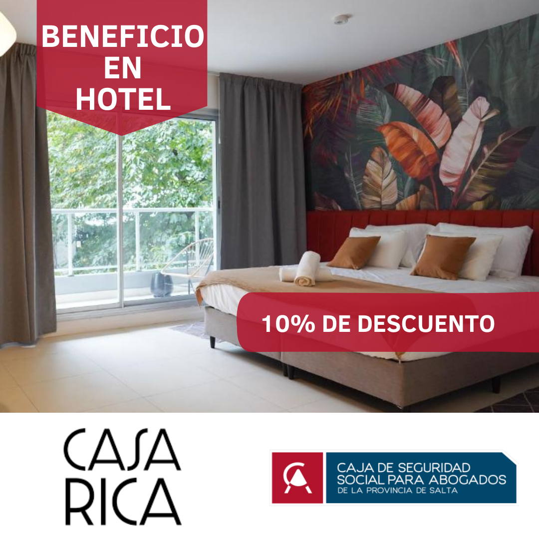 Los/as afiliados/as activos al día, jubilados/as y pensionados/as podrás acceder al beneficio del 10% de descuentos alojándose en Casa Rica Aparts Residencias Argentina.