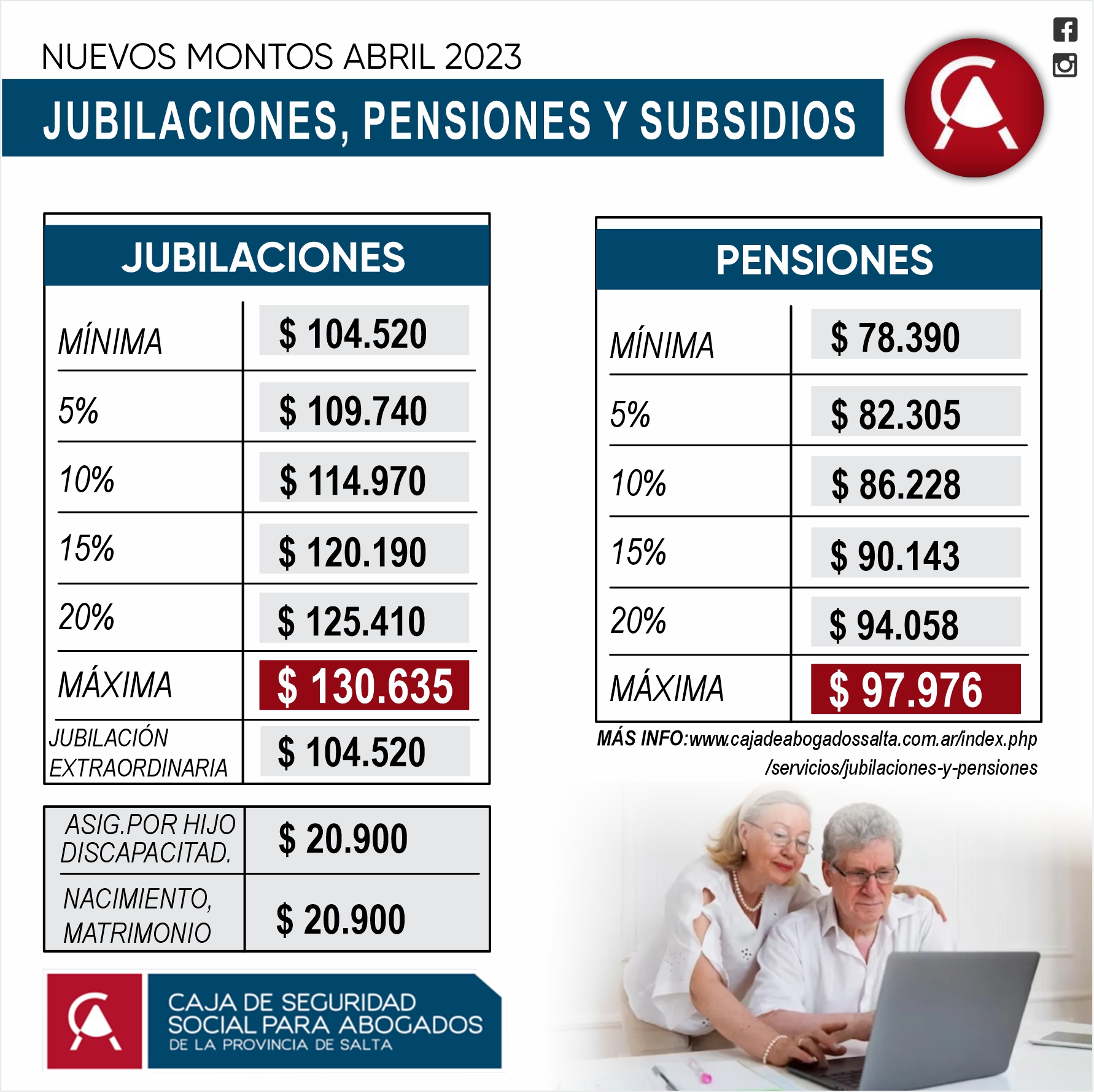 NUEVOS MONTOS DE JUBILACIONES, PENSIONES Y SUBSIDIOS.
