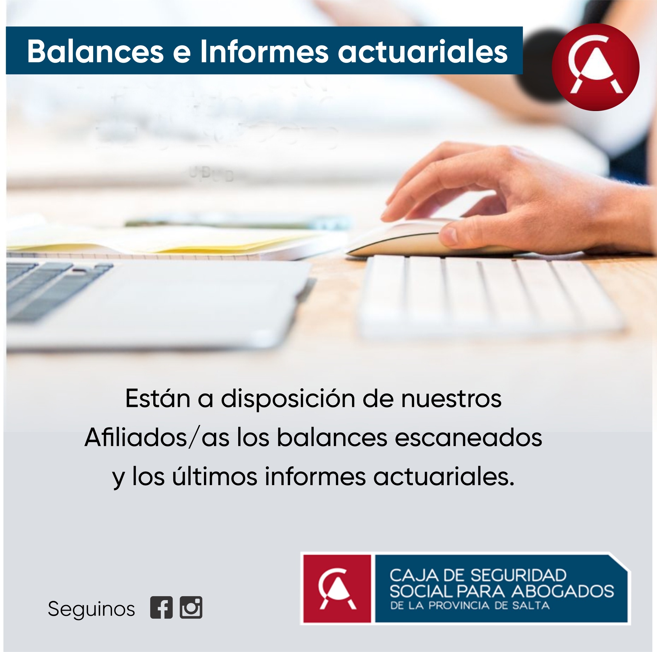Estan a disposición de nuestros afiliados/as en nuestra Caja, los balances escaneados y los últimos informes actuariales.