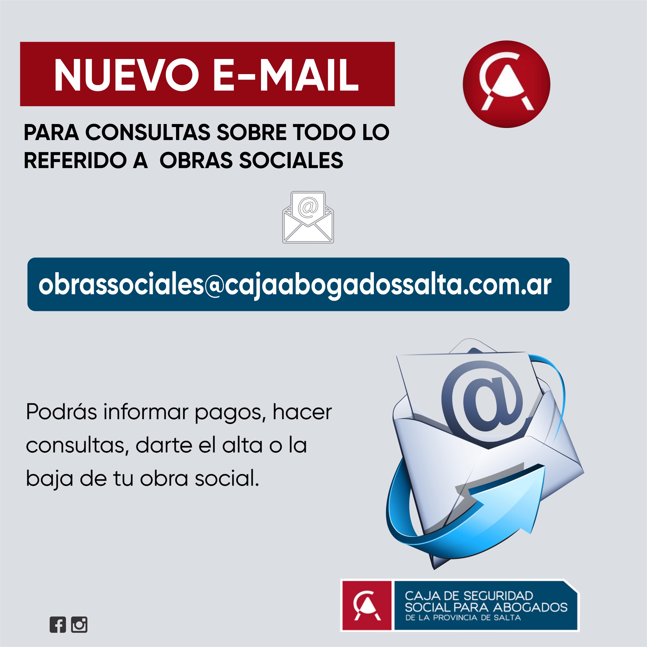 El mail es : obrassociales@cajaabogadossalta.com.ar