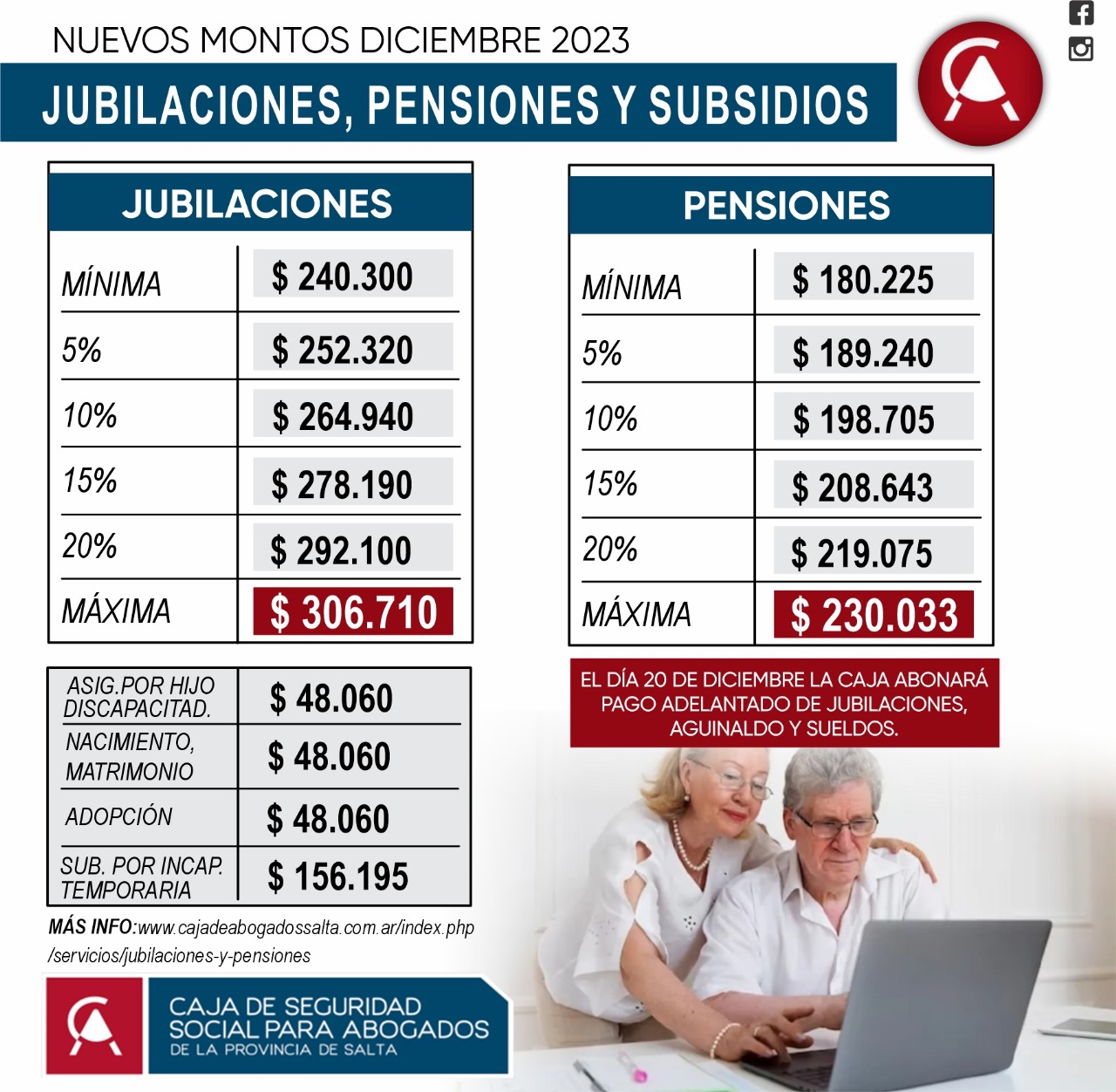 NUEVOS MONTOS DE JUBILACIONES, PENSIONES Y SUBSIDIOS