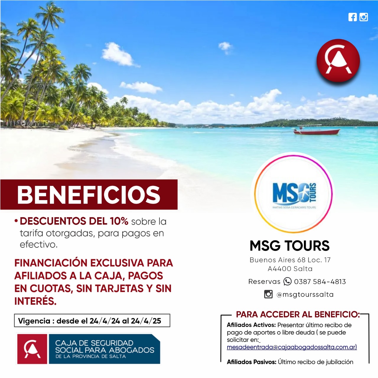 NUEVO BENEFICIO. CONVENIO CON MSG TOURS