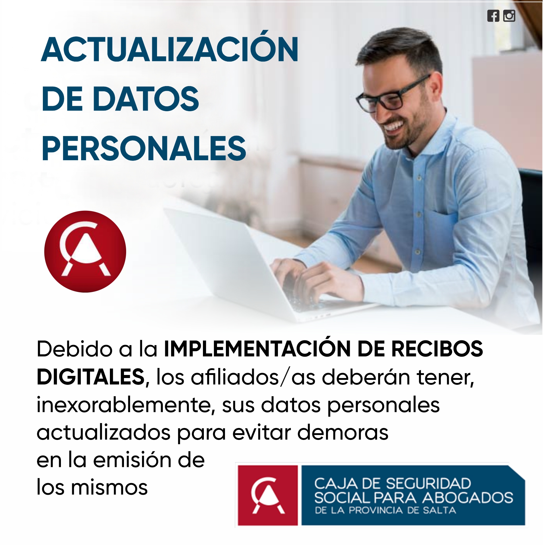 Informamos a nuestros afiliados/ afiliadas que con motivo de la nueva implementación de recibos digitales, solicitamos, inexorablemente, que tengan sus datos personales actualizados.