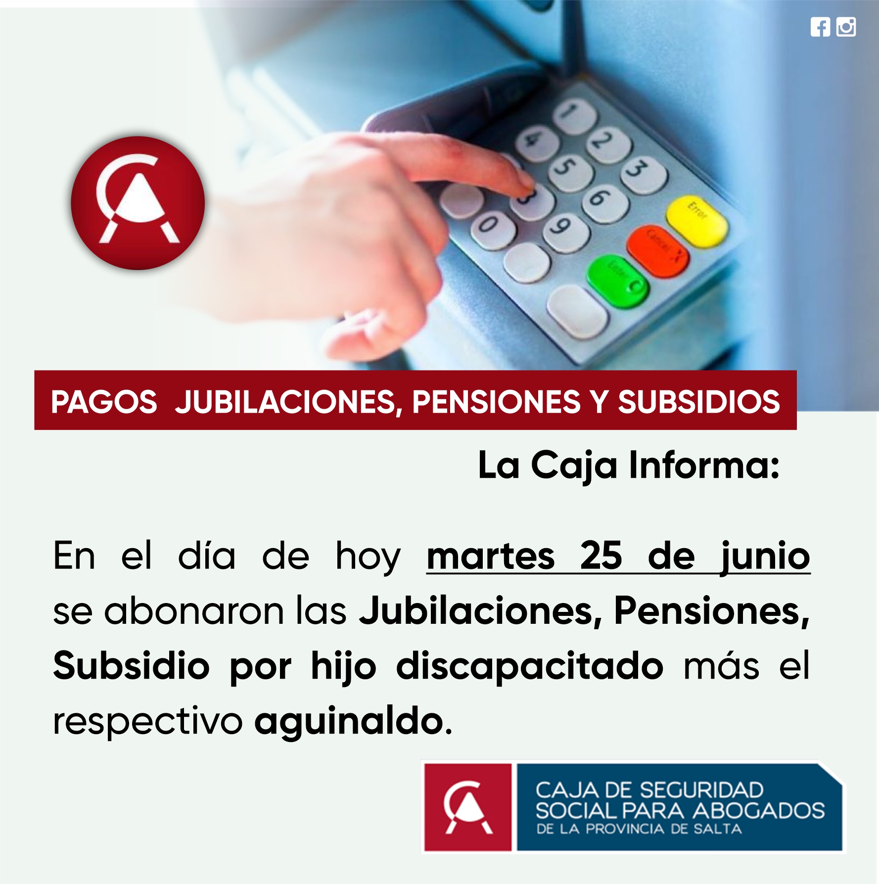PAGOS DE JUBILACIONES, PENSIONES Y SUBSIDIO POR HIJO DISCAPACITADO
