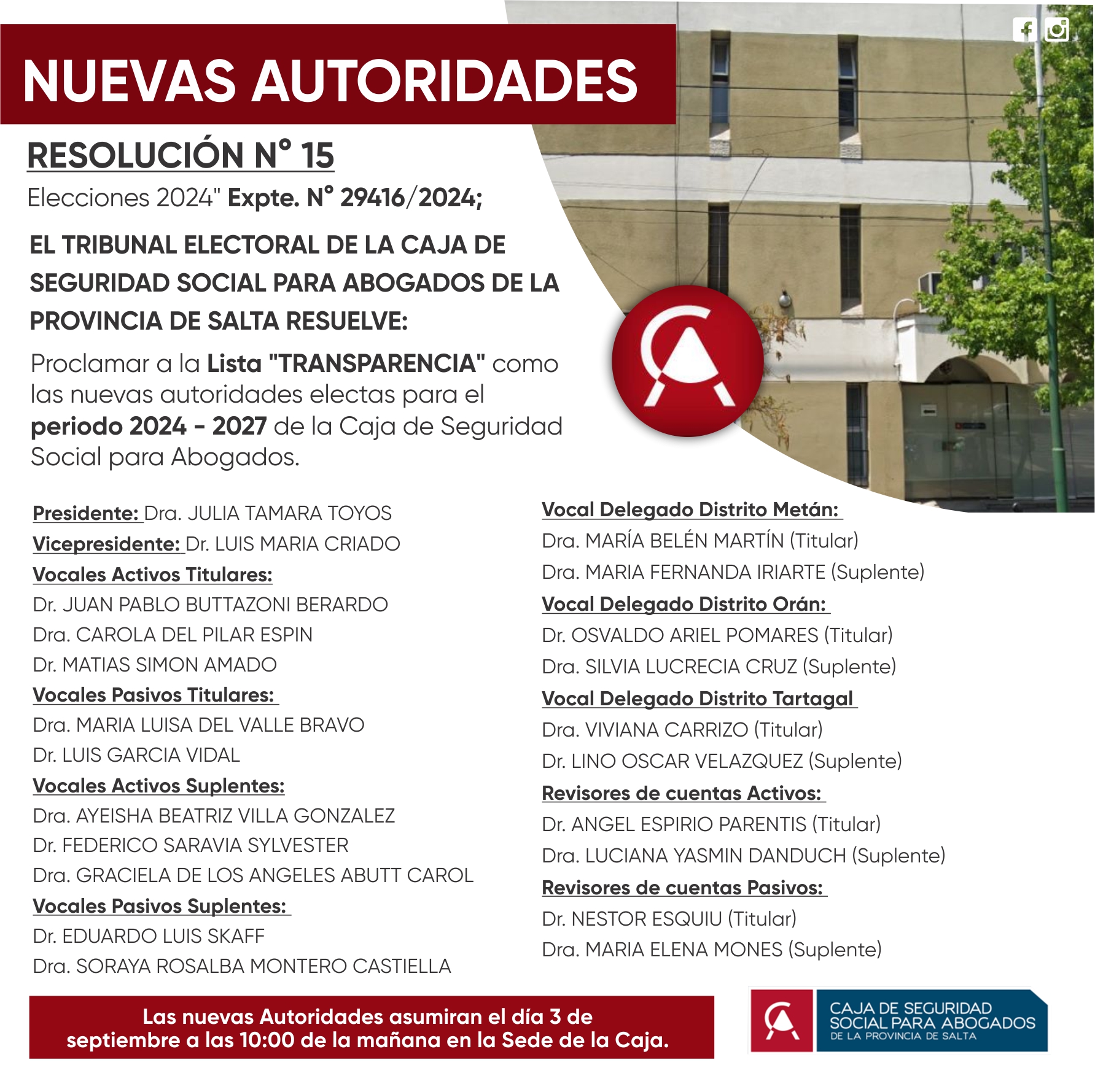 NUEVAS AUTORIDADES cAJA DE SEGURIDAD SOCIAL PARA ABOGADOS DE LA PROVINCIA DE SALTA
